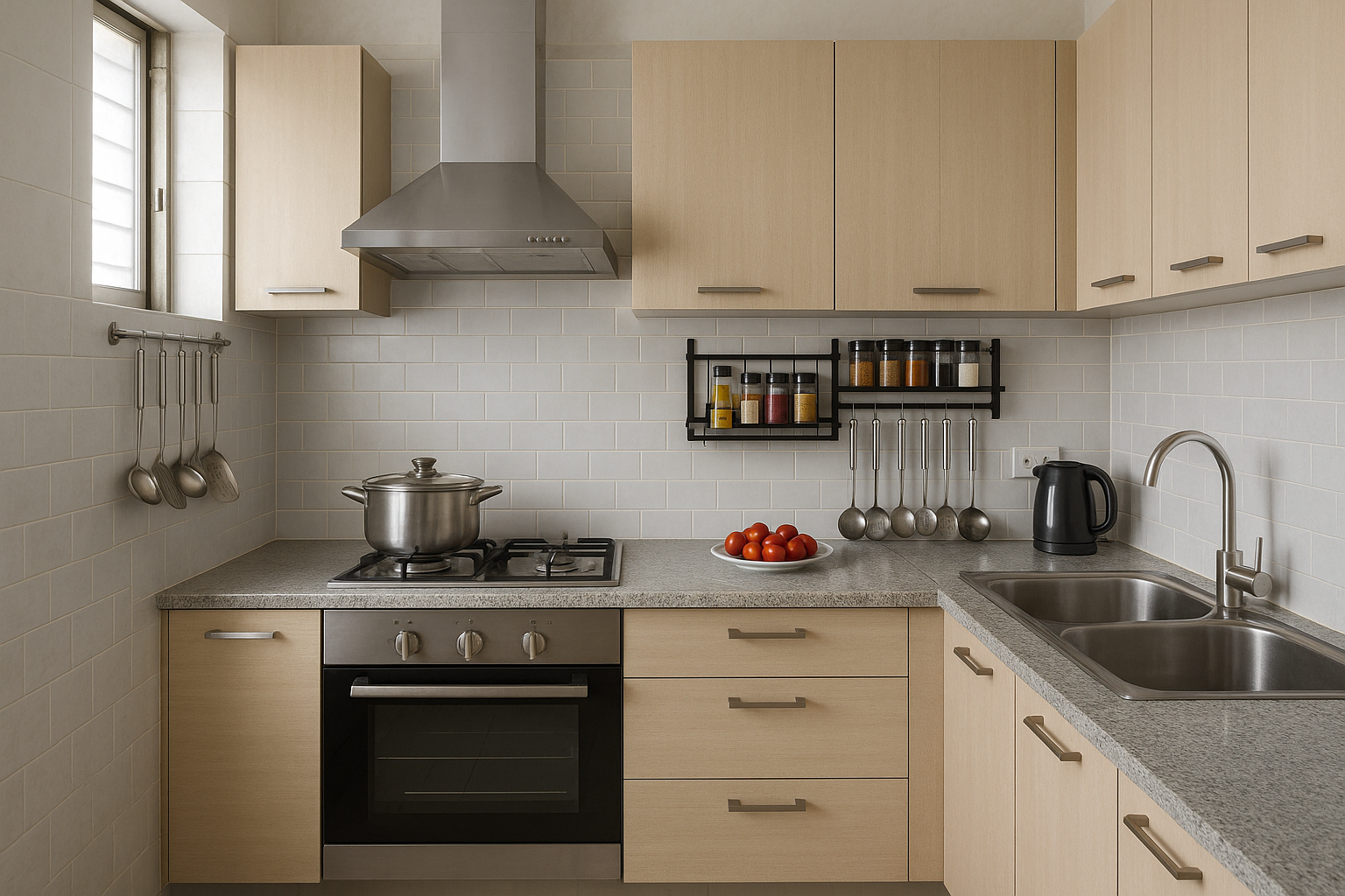 Unlike western kitchens, Bangladeshi cooking involves heavy spices, frequent frying, and daily use of large utensils. That’s why kitchens here need: