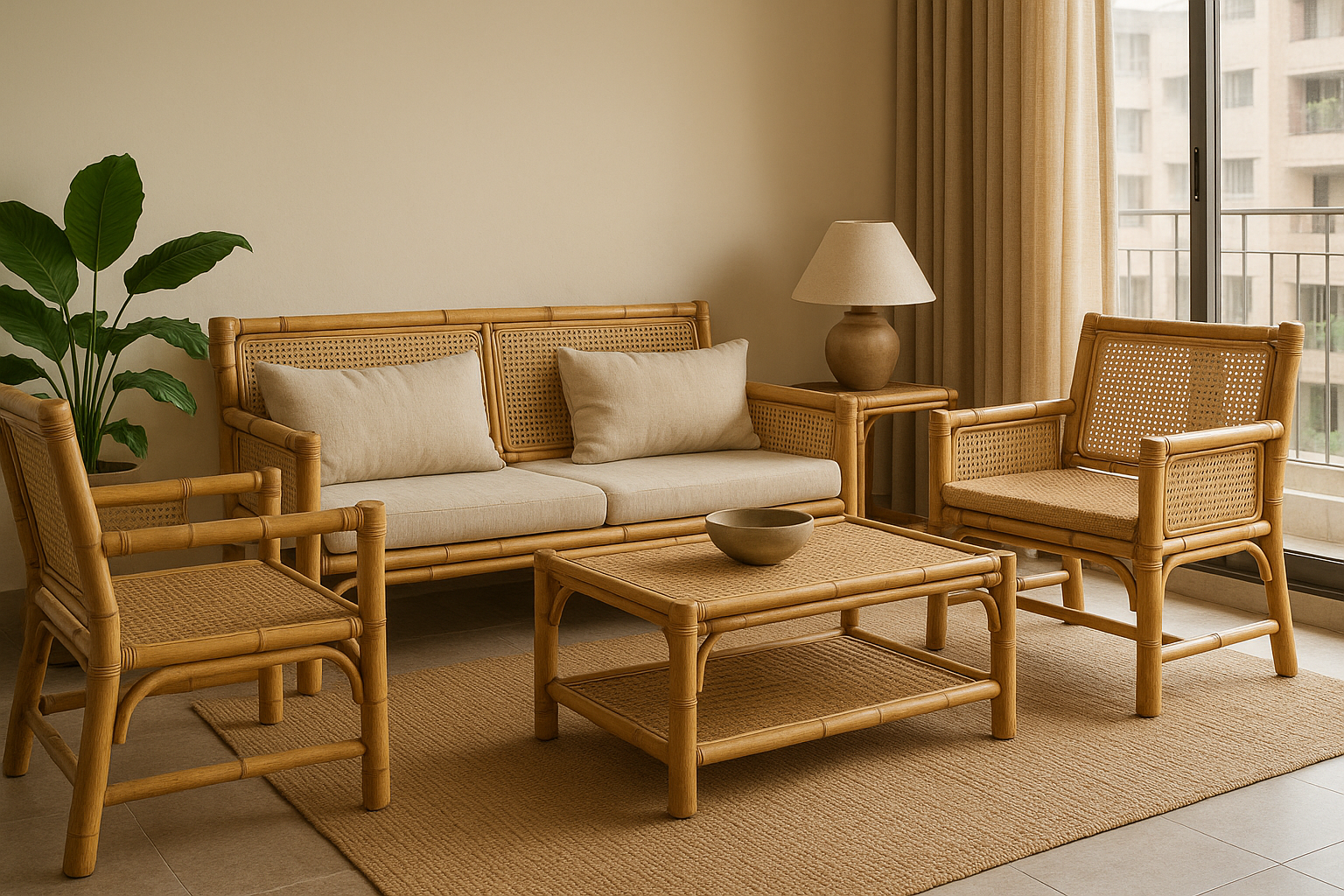 Go for locally crafted wooden or cane furniture to reduce import-related carbon footprint