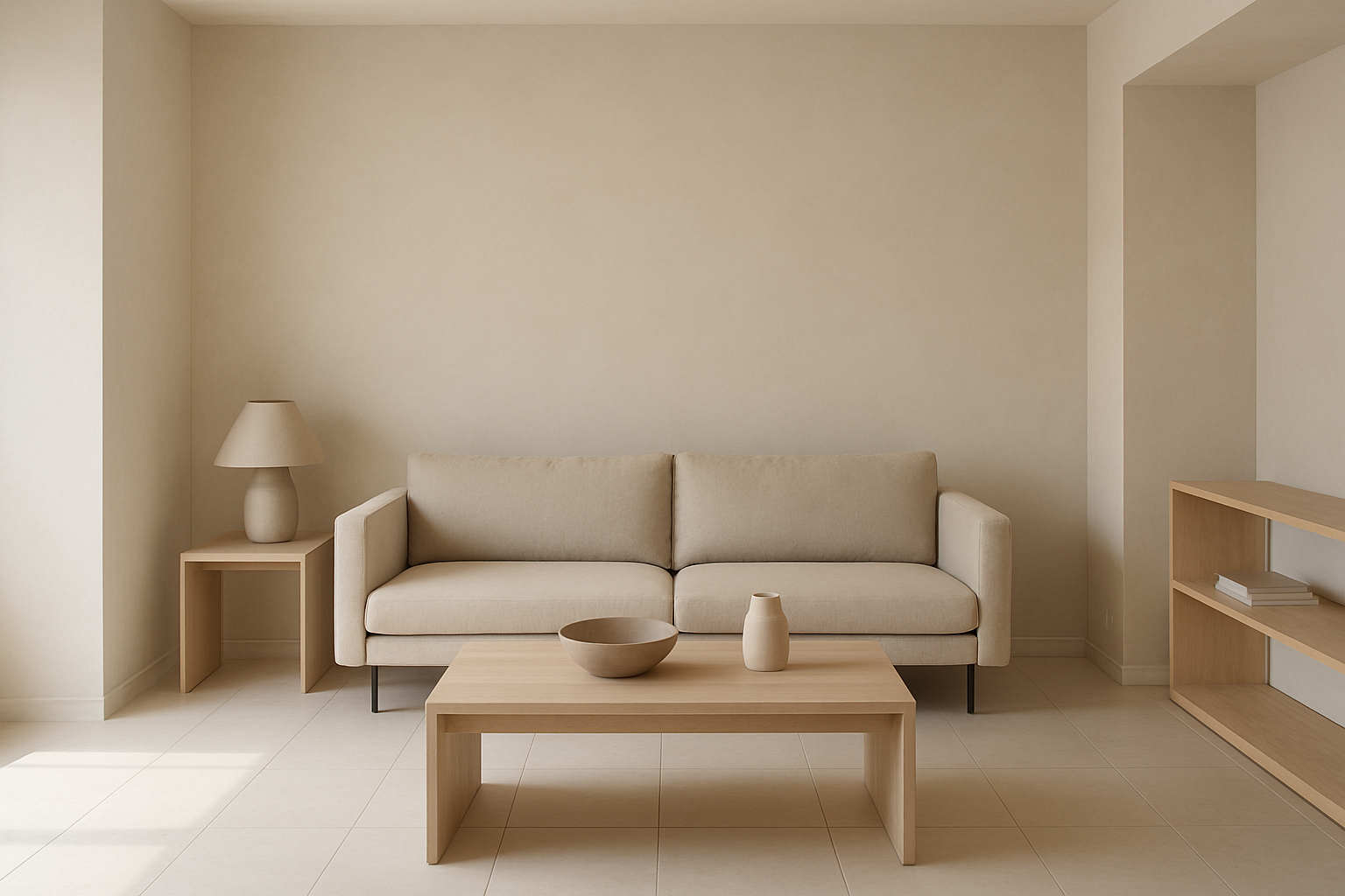 Neutral walls and natural textures.