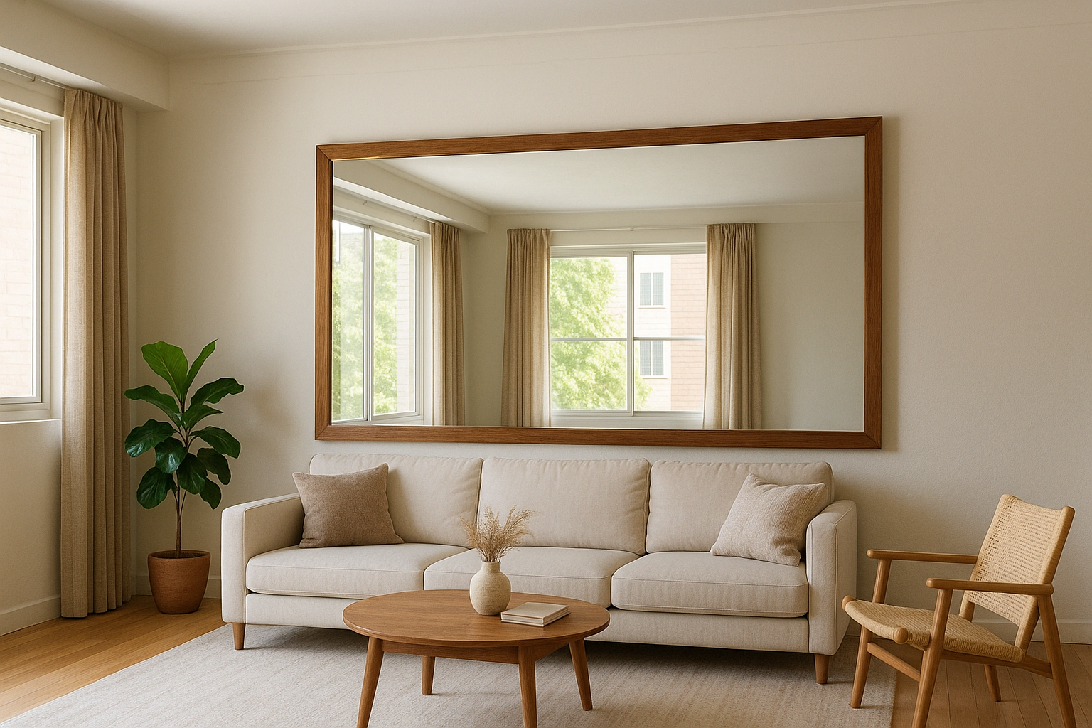 Place a large mirror opposite a window to reflect natural light.