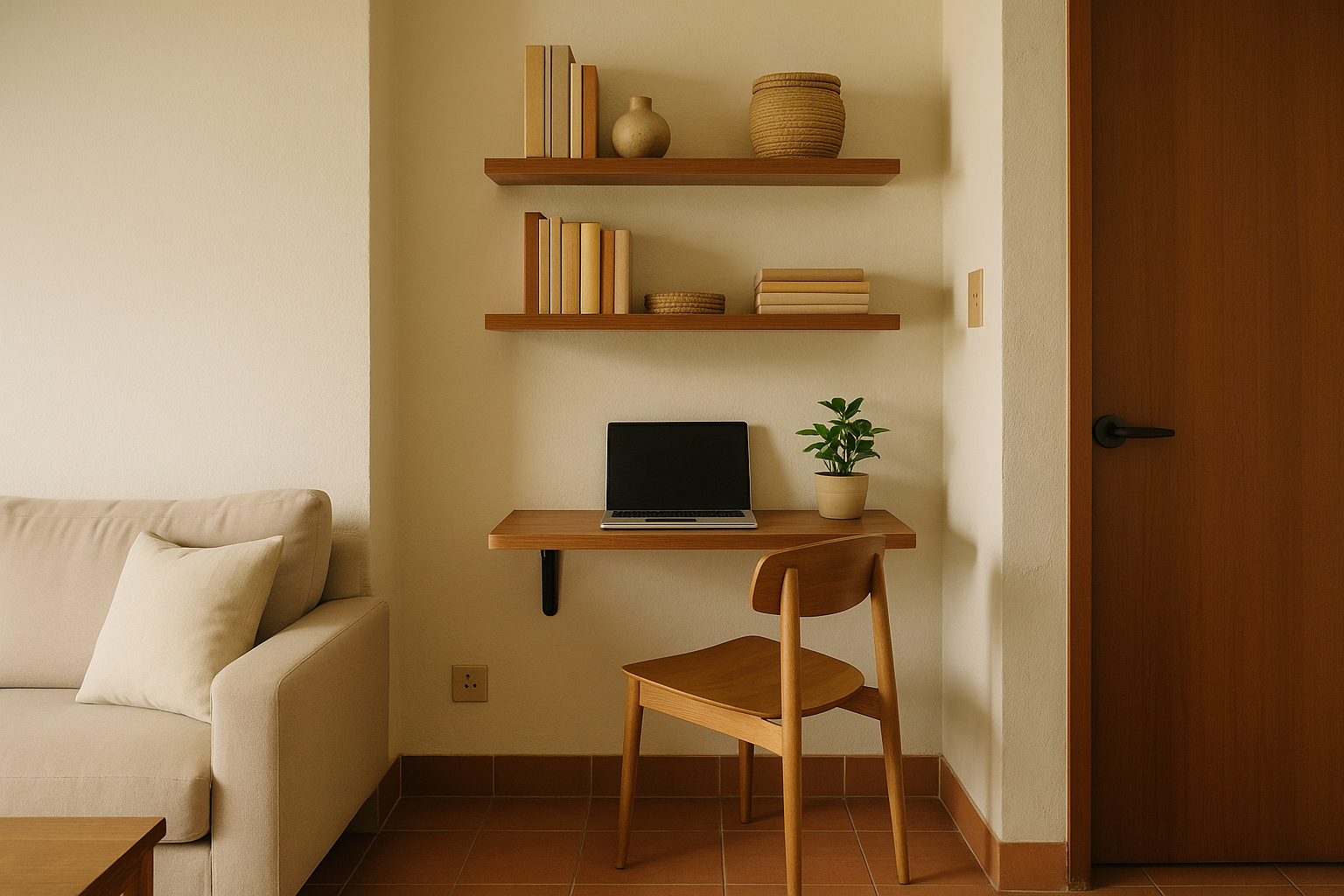 Small workstation with wall-mounted desk.