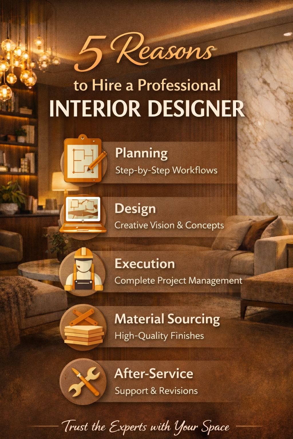 Experience & Expertise – years of designing apartments, duplexes, and offices.