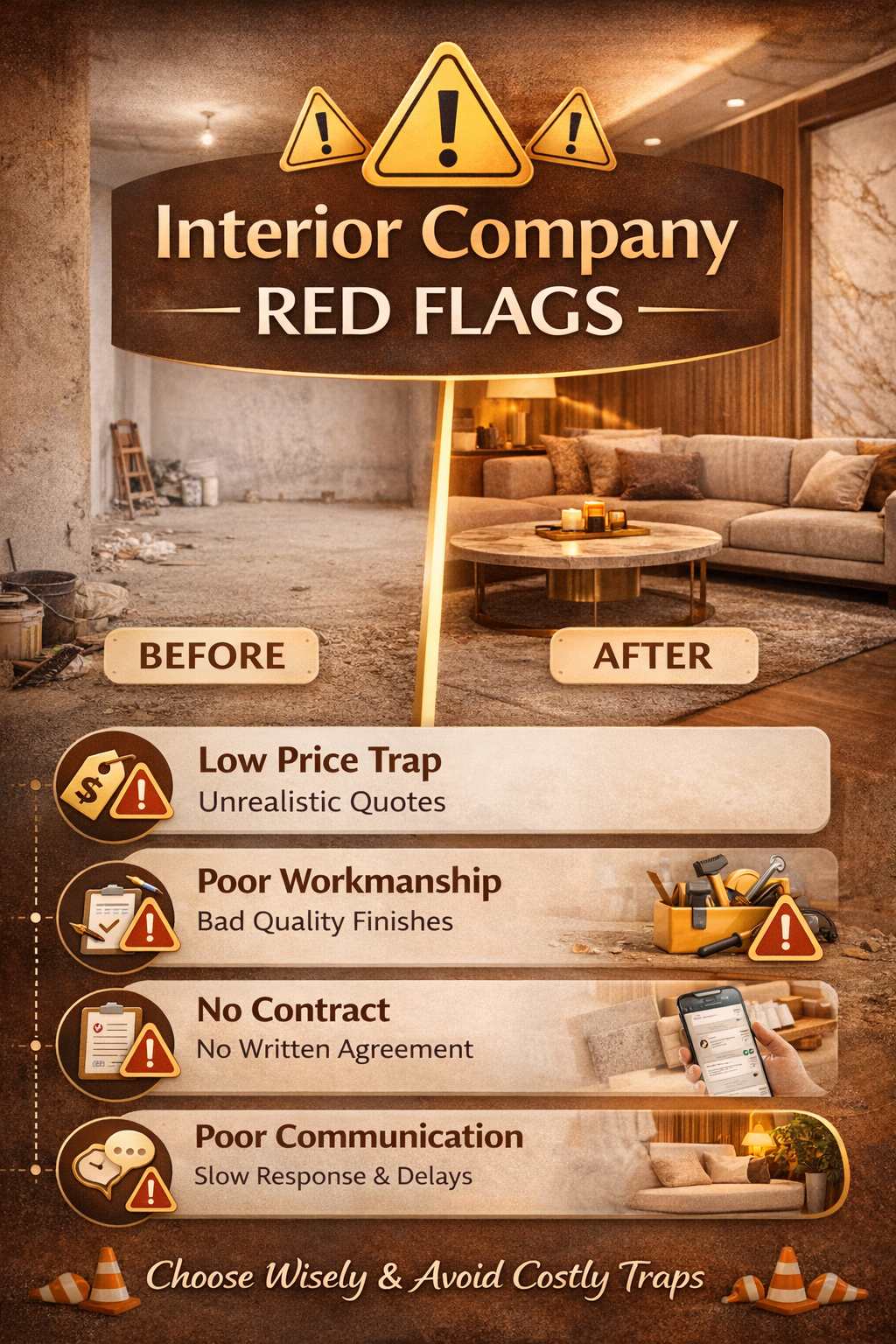 These often lead to unfinished work, cost overruns, or poor quality finishes.