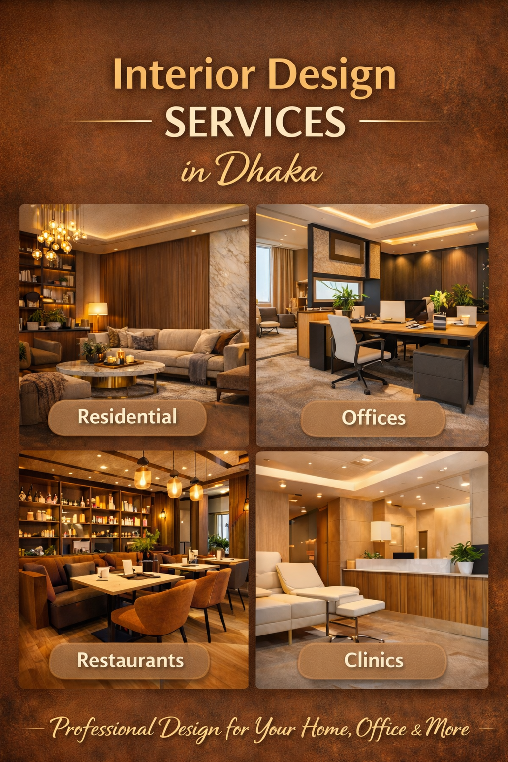 ✅ 50+ completed projects across Dhaka (apartments, duplexes, offices, restaurants, hospitals).