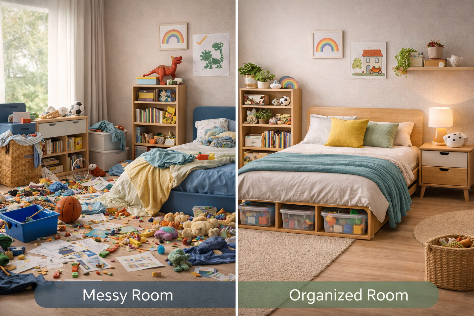 Kids accumulate a lot of items - books, toys, clothes, art supplies. Without proper storage, the room quickly becomes messy.