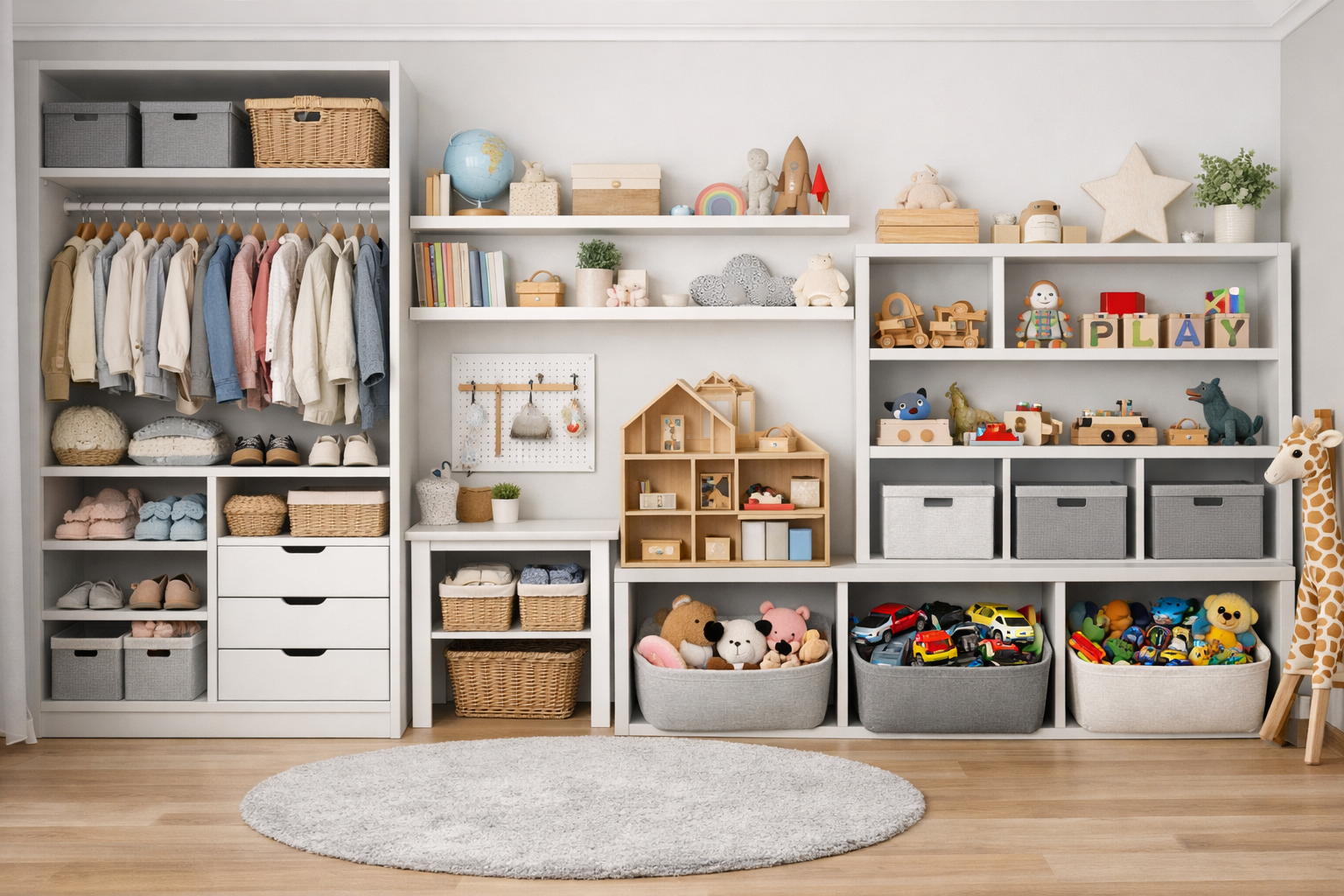 Good storage not only keeps the room tidy but also teaches children responsibility.