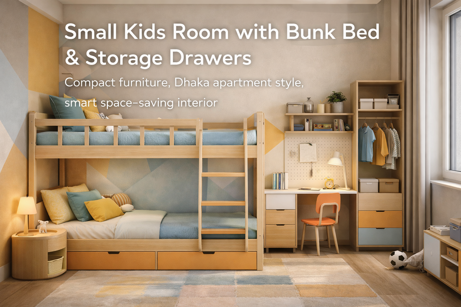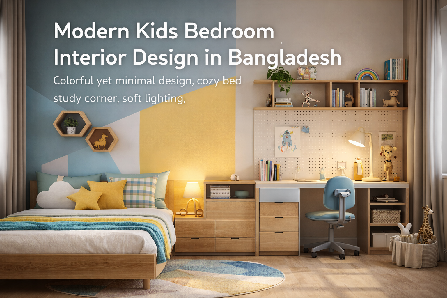 Creative kids’ room interior design ideas for Bangladeshi homes—smart storage, safe layouts, and colorful designs to create a fun, functional space for kids.